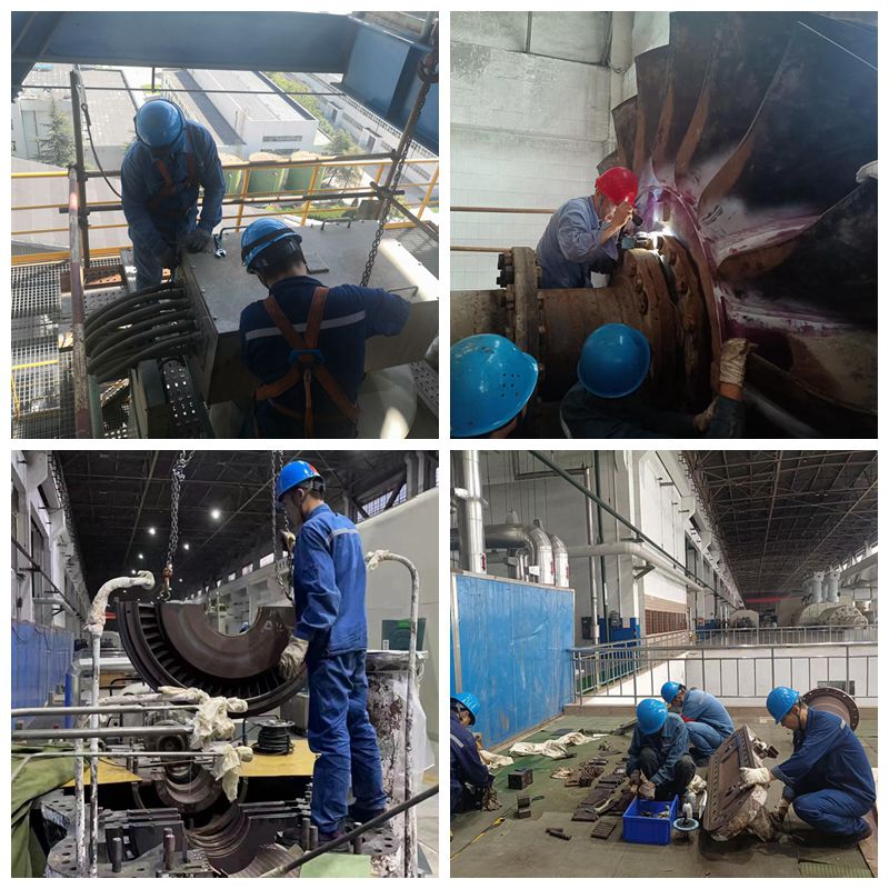 渭河發(fā)電#3機(jī)組C級(jí)檢修現(xiàn)場(chǎng)一片熱火朝天的景象,檢修人員主動(dòng)放棄中秋假期參與到C修當(dāng)中。汽機(jī)房各種交叉作業(yè)同時(shí)進(jìn)行,大錘的叮當(dāng)聲、行車起吊的哨子聲、銅棒的敲擊聲此起彼伏。乙小機(jī)大修的清掃、測(cè)量工作有序展開,檢修人員對(duì)小機(jī)轉(zhuǎn)子和葉輪進(jìn)行清掃,細(xì)心地粘貼白色膠布用來測(cè)量汽封間隙,確保檢修質(zhì)量精益求精。