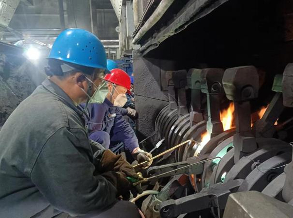 搶修方案確定后,兩組人員接續(xù)戰(zhàn)斗,展開搶修。在轟鳴的機器聲中,在粉塵彌漫的細碎煤機室內(nèi),大家搶時間、爭進度,經(jīng)過42小時鏖戰(zhàn),于12日凌晨5時許結(jié)束搶修,共完成20枚錘臂的拆除、回裝及9枚錘頭更換工作。
