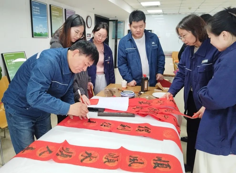 “龍騰四海春光好,福滿九州喜氣濃”“創(chuàng)大業(yè)千秋昌盛,展宏圖再就輝煌”……活動(dòng)現(xiàn)場(chǎng),公司邀請(qǐng)的兩位書(shū)法家和來(lái)自基層的書(shū)法愛(ài)好者揮毫潑墨、筆走龍蛇,一副副象征著平安和諧的春聯(lián),一張張寄托著吉祥如意的“?!弊?,包含著對(duì)個(gè)人來(lái)年工作生活的憧憬期許,寄托著對(duì)公司未來(lái)發(fā)展的誠(chéng)摯祝愿。