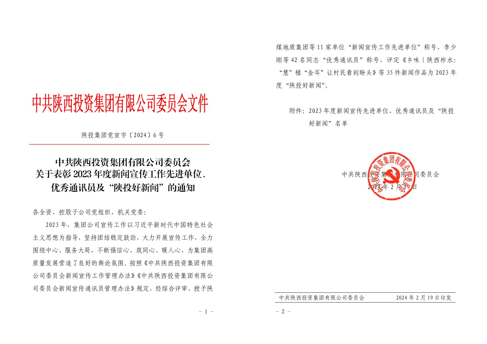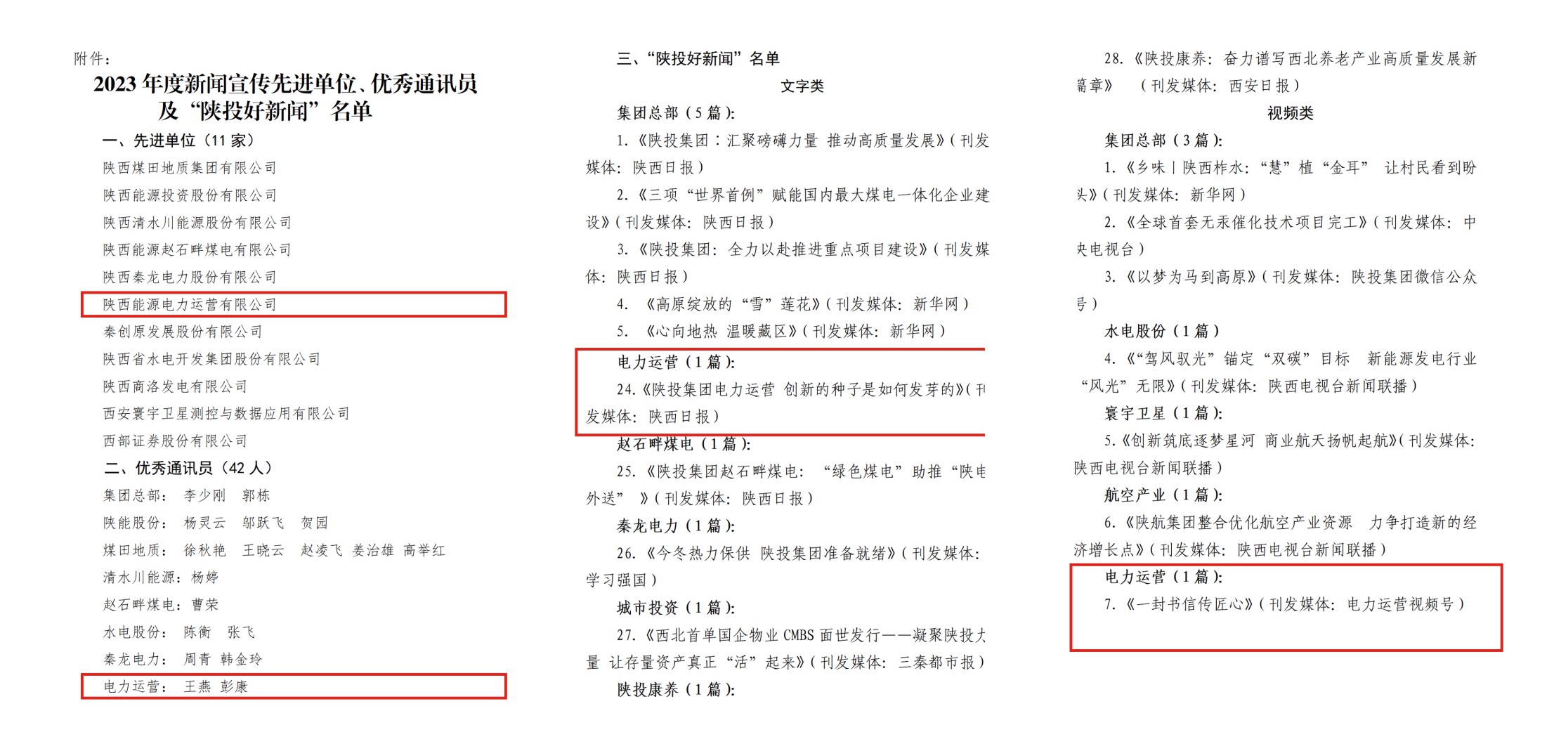 近日,公司榮獲集團公司2023年度“新聞宣傳工作先進單位”稱號,連續(xù)五年獲此殊榮。公司拍攝的視頻《一封書信傳匠心》、稿件《陜投集團電力運營 創(chuàng)新的種子是如何發(fā)芽的》分獲“陜投好新聞”。