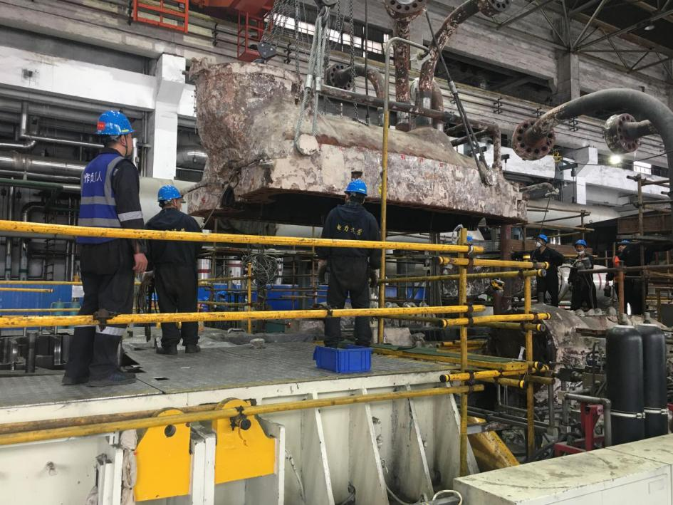 “請(qǐng)將您的手機(jī)、鑰匙等物品放進(jìn)儲(chǔ)存袋,再次確認(rèn)沒(méi)有攜帶其它物品,方可上缸工作?!痹谄麢C(jī)本體檢修上缸入口處,專(zhuān)職值班人員正在進(jìn)行二次檢查登記,杜絕一切安全隱患。