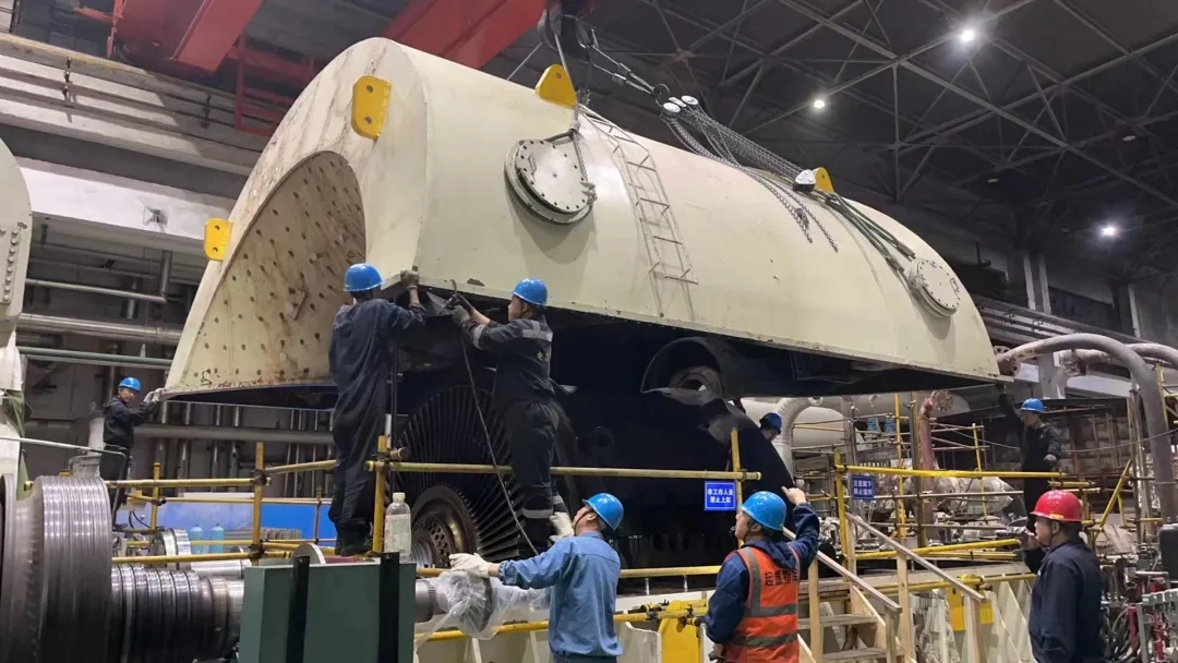 隔板螺絲緊固完成、內(nèi)缸螺絲熱緊完成......經(jīng)過16小時奮戰(zhàn),低壓缸平穩(wěn)“對號入座”,汽輪機扣缸工作順利完成,標志著渭河項目部#5機A修工作全面進入回裝調(diào)試階段。