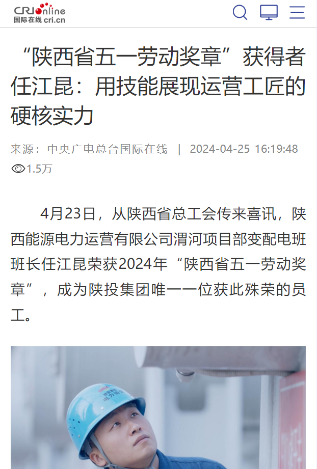 4月23日,從陜西省總工會傳來喜訊,陜西能源電力運營有限公司渭河項目部變配電班班長任江昆榮獲2024年“陜西省五一勞動獎?wù)隆保蔀殛兺都瘓F(tuán)唯一一位獲此殊榮的員工。