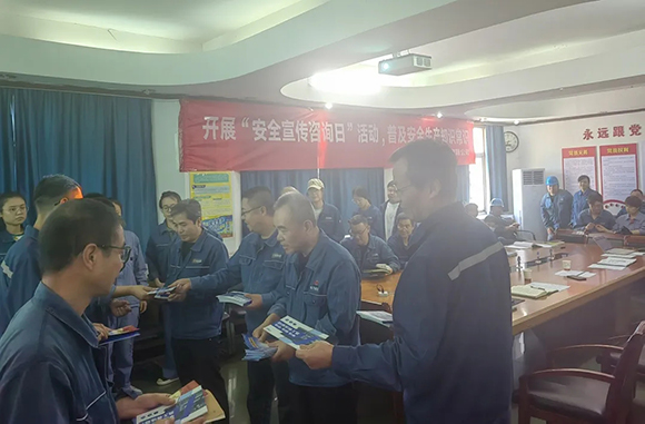 與會人員觀看了“安全生產(chǎn)月”視頻《生命通道》和應急科普情景劇《進入有限空間 守牢安全底線》。項目部通過拉設宣傳橫幅、張貼員工安全生產(chǎn)法律知識普及宣教掛圖、現(xiàn)場發(fā)放普法宣傳材料等形式,營造出濃厚的活動氛圍。