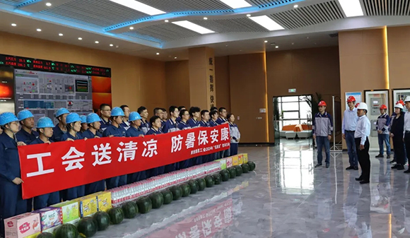 6月12日,集團(tuán)工會(huì)連主席一行到公司吉木薩爾項(xiàng)目部開(kāi)展“送清涼”活動(dòng),為連日來(lái)奮戰(zhàn)生產(chǎn)一線的職工送去“娘家人”的關(guān)懷和關(guān)愛(ài)。