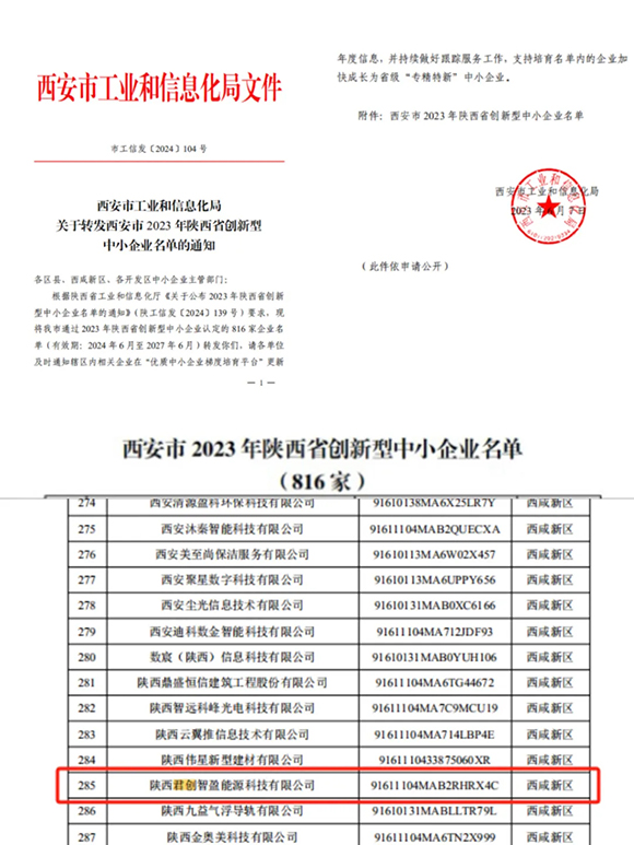 日前,君創(chuàng)科技順利通過(guò)陜西省工業(yè)和信息化廳認(rèn)定,獲得“2023年陜西省創(chuàng)新型中小企業(yè)”。