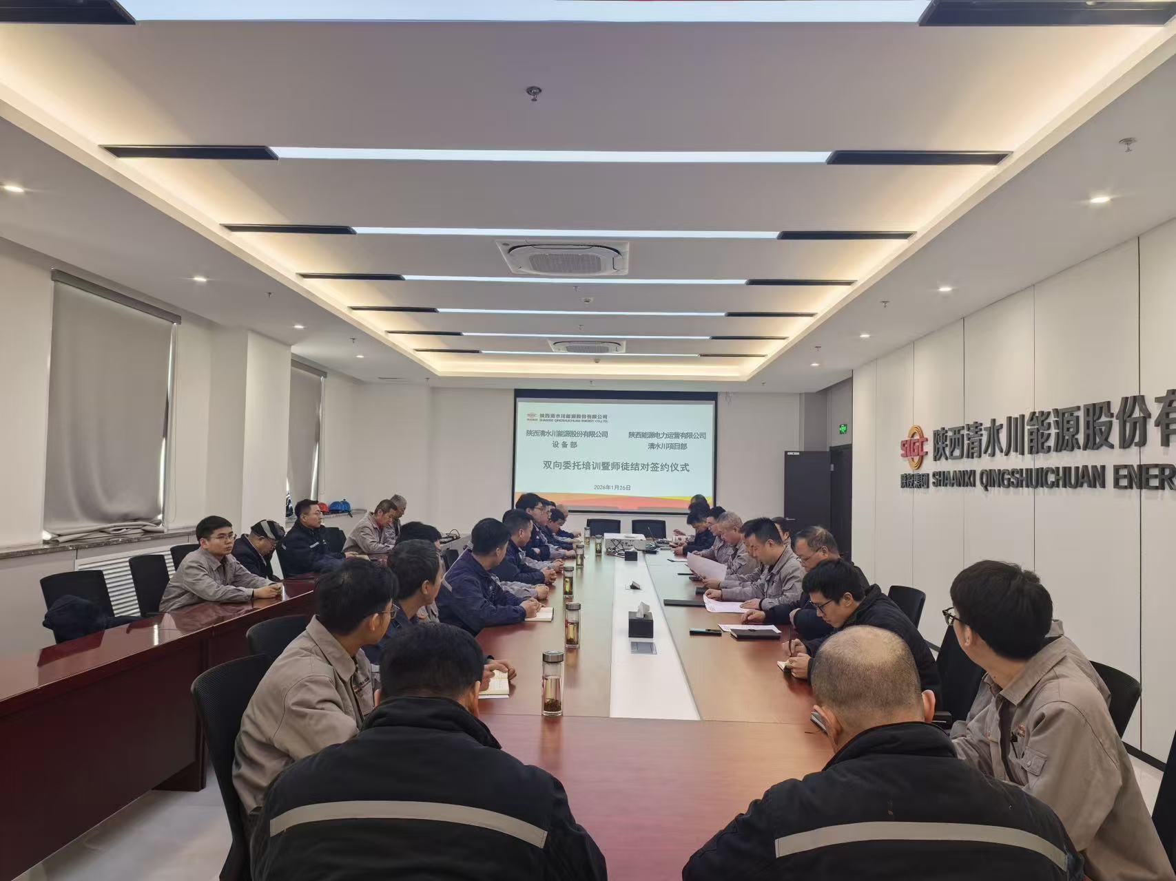 1月26日,清水川能源設備部與公司清水川項目部舉辦雙向委托培訓暨師徒結對簽約儀式。