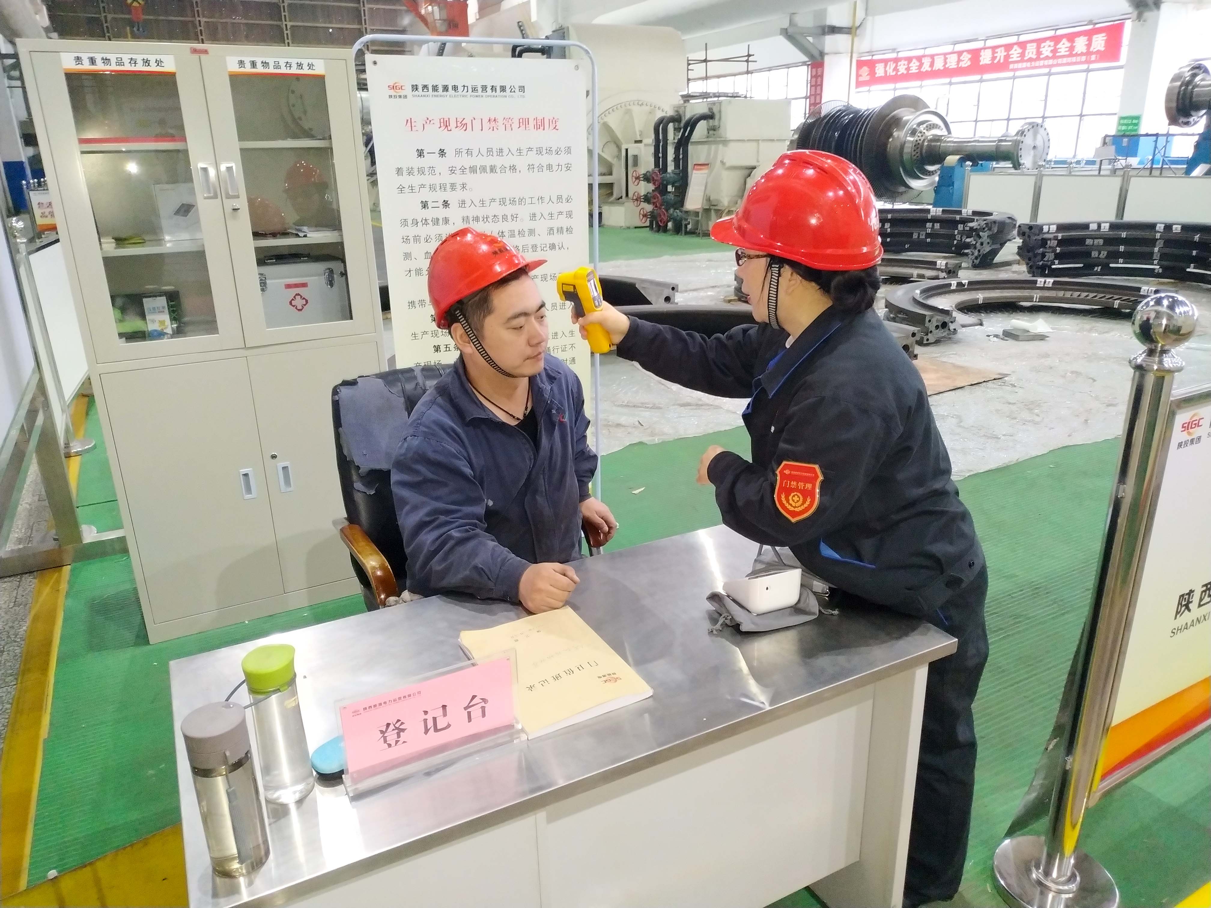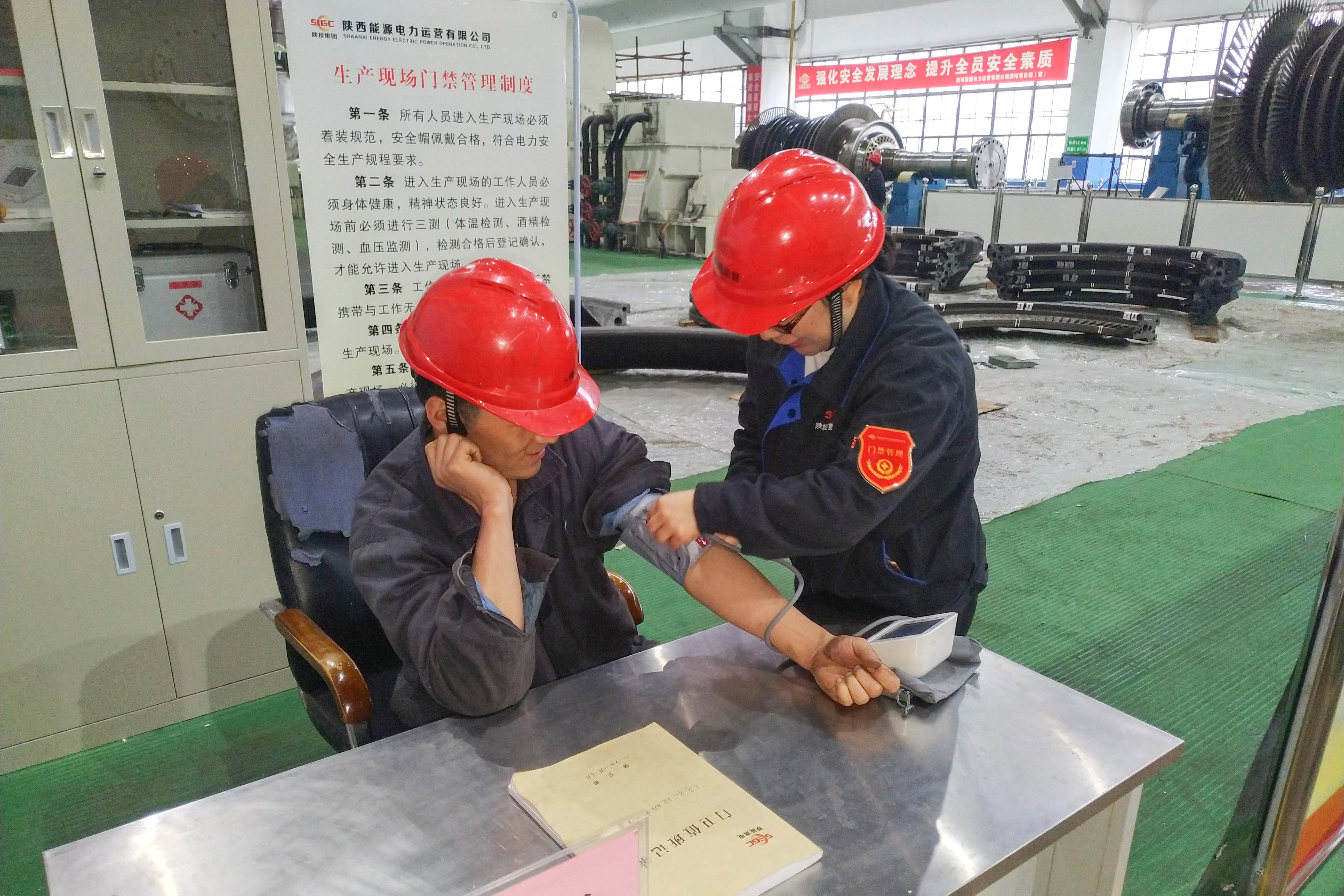 自渭電#6機高背壓轉子更換工作開工以來,渭河項目部堅持每天在生產區(qū)入口處設專人,對進入現(xiàn)場的工作人員進行體溫、酒精、血壓等身體健康狀況檢查,檢測合格登記確認后,方可進入現(xiàn)場,確保全體參戰(zhàn)人員以良好的精神狀態(tài)投入工作,全力保障此次檢修任務高質量如期完成。