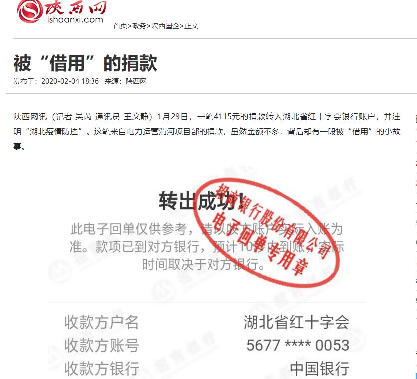 1月29日,一筆4115元的捐款轉(zhuǎn)入湖北省紅十字會銀行賬戶,并注明“湖北疫情防控”。這筆來自電力運營渭河項目部的捐款,雖然金額不多,背后卻有一段被“借用”的小故事。