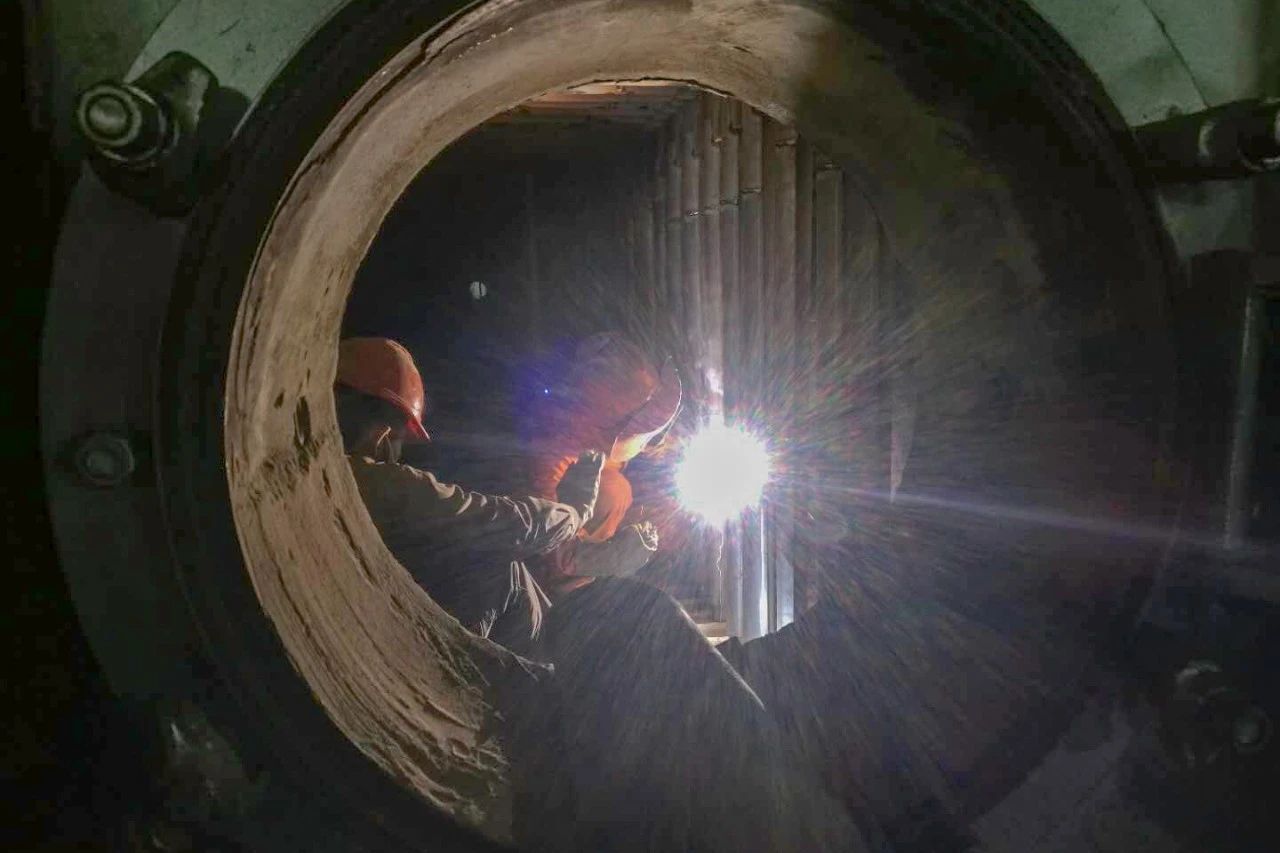 3月10日,商洛項(xiàng)目部機(jī)務(wù)隊(duì)鍋爐班在#2爐電除塵內(nèi)進(jìn)行檢查