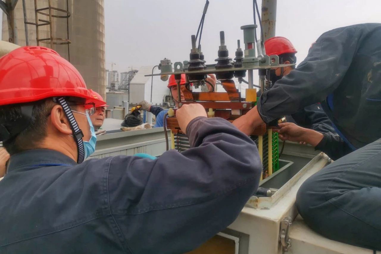 4月6日,控制班開始了#5電除塵222電場變壓器的吊芯檢查。經(jīng)過線圈檢查、油色譜分析及耐壓試驗(yàn)等工作,發(fā)現(xiàn)變壓器內(nèi)部存在著嚴(yán)重缺陷。班組立刻組織人力、準(zhǔn)備備品,僅用時(shí)2天就完成了更換工作。