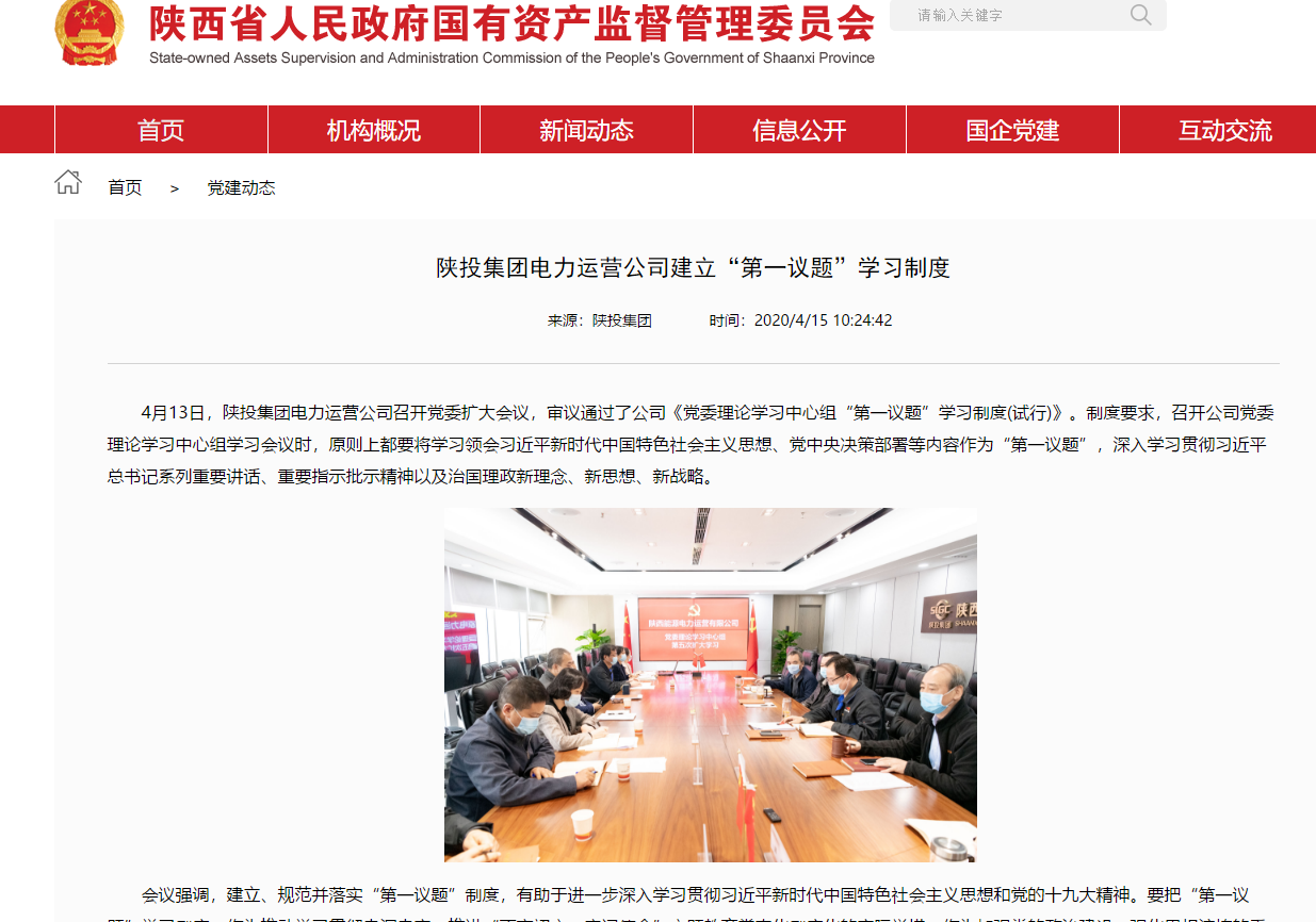 為落實(shí)集團(tuán)黨委2020年宣傳思想文化工作要點(diǎn),豐富黨委理論中心組學(xué)習(xí)內(nèi)容形式,按照集團(tuán)巡視整改要求,4月13日,電力運(yùn)營(yíng)公司召開(kāi)黨委擴(kuò)大會(huì)議,審議通過(guò)了公司《黨委理論學(xué)習(xí)中心組“第一議題”學(xué)習(xí)制度(試行)》。制度要求,召開(kāi)公司黨委理論學(xué)習(xí)中心組學(xué)習(xí)會(huì)議時(shí),原則上都要將學(xué)習(xí)領(lǐng)會(huì)習(xí)近平新時(shí)代中國(guó)特色社會(huì)主義思想、黨中央決策部署等內(nèi)容作為“第一議題”,深入學(xué)習(xí)貫徹習(xí)近平總書(shū)記系列重要講話、重要指示批示精神以及治國(guó)理政新理念、新思想、新戰(zhàn)略。