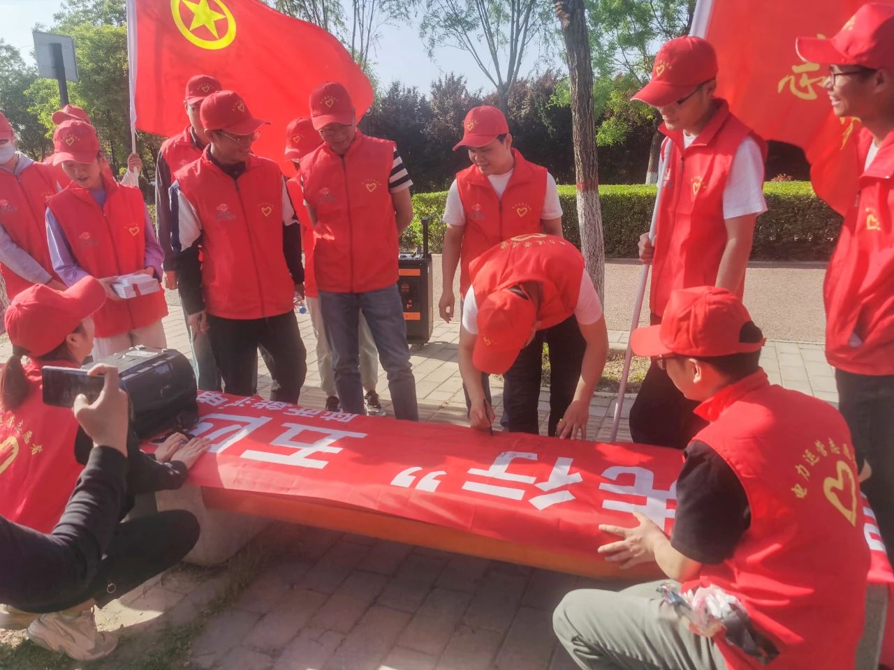 所有人員在橫幅上簽名,表達(dá)了團(tuán)員青年為企業(yè)發(fā)展奉獻(xiàn)青春的堅(jiān)定決心。