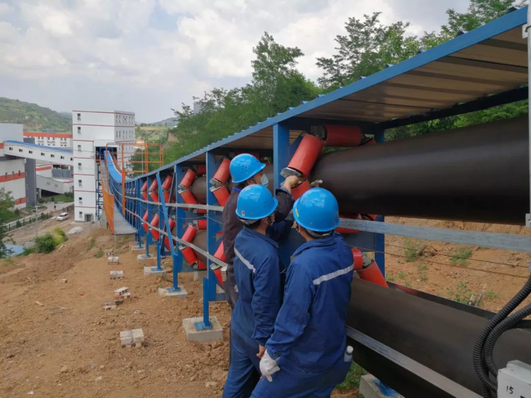 輸煤廠區(qū),長(zhǎng)約1.8公里的管狀帶正在進(jìn)行系統(tǒng)帶電,單體調(diào)試,工作人員正一絲不茍排查并消除設(shè)備缺陷,順利完成這項(xiàng)節(jié)點(diǎn)性任務(wù)。